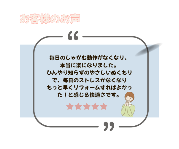 毎日しゃがむのが辛い😢快適なトイレにリフォームしたい✨とチラシを見てご依頼をいただきました!